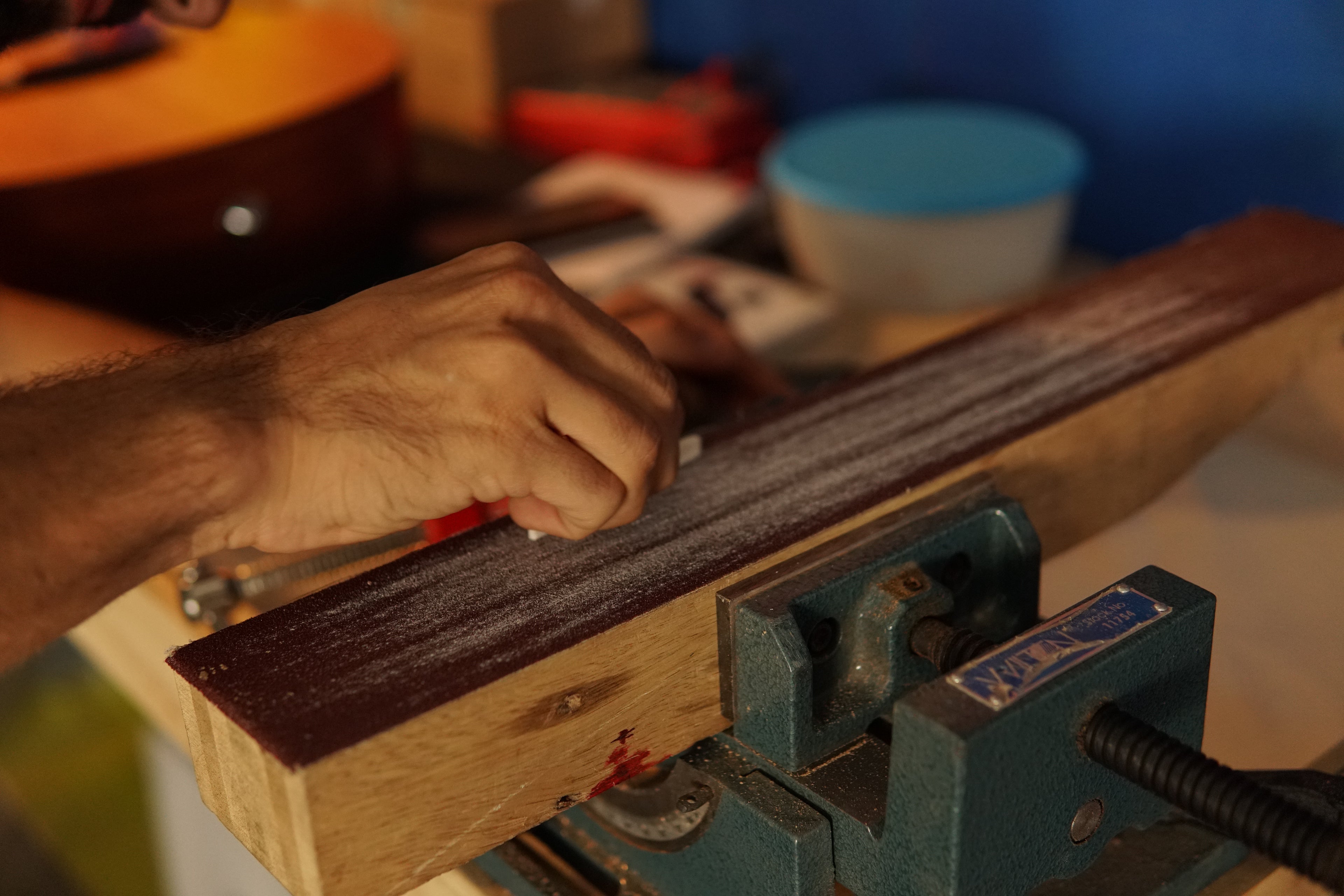 Refrets, neck shaping, neck resets, fretboard replacement, truss rod repair/ repacment, bridge reglue and shaving , top bellying repair, guitar humidification, nut and saddle fabrication, and more